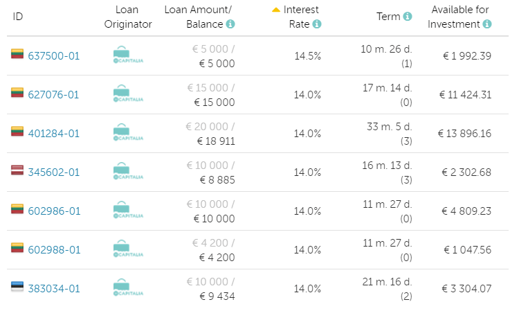 Examples of Capitalia loans on the Mintos Platform: